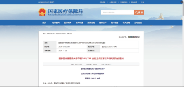 国家医疗保障局关于印发DRG/DIP 支付方式改革三年行动计划的通知医保发〔2021〕48号各省、自治区、直辖市及新疆生产建设兵团医疗保障局:...