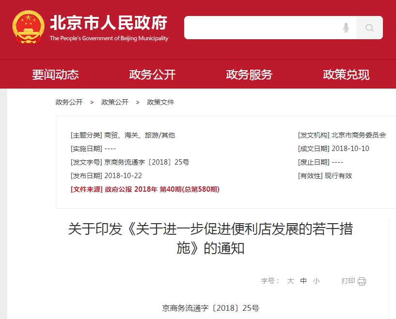 关于印发《关于进一步促进便利店发展的若干措施》的通知打印字号:大中小京商务流通字〔2018〕25号各区人民政府、市政府各有关部门: 《...