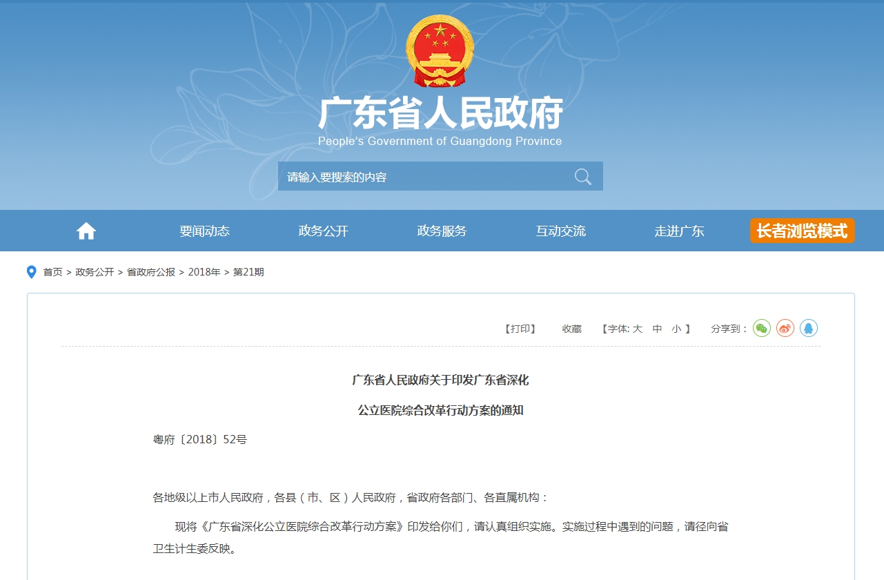 广东省人民政府关于印发广东省深化公立医院综合改革行动方案的通知粤府〔2018〕52号各地级以上市人民政府,各县(市、区)人民政府,省政府...